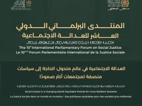 تحت الرعاية السامية لصاحب الجلالة الملك محمد السادس نصره الله، ينظم مجلس المستشارين، بشراكة مع المجلس الاقتصادي والاجتماعي والبيئي، يوم الإثنين 9 فبراير 2026، فعاليات المنتدى البرلماني الدولي العاشر للعدالة الاجتماعية، تحت شعار:
